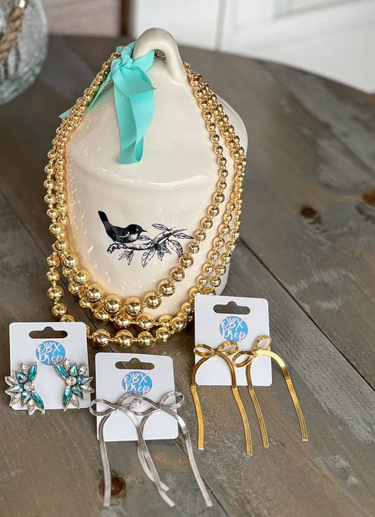 Bow and Ribbon Dangle Stainless Steel Earrings
