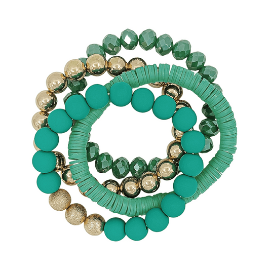 Crystal, Rubber & Gold Set of 4 Stretch Bracelets